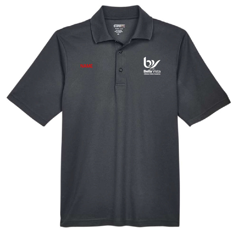 CORE365 Men's Origin Performance Piqué Polo. Bella Vista PD Citizens Police Academy logo embroidered on the left chest. Name on the right chest